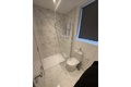 Modern tiled bathroom suite with a walk in shower